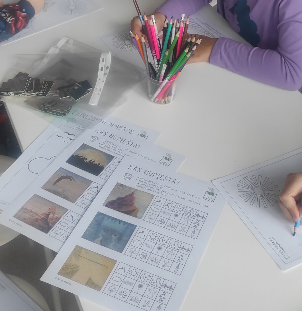 Šiandien mokiniai leidosi į pažintinę ir kūrybinę kelionę po Mikalojaus Konstantino Čiurlionio pasaulį. Jie klausėsi jo muzikos, tyrinėjo dailės kūrinius ir atrado, kaip garsai susilieja su spalvomis. Įkvėpti kompozitoriaus ir dailininko kūrybos, mažieji piešė savo paveikslus, kūrė dėliones, atsakinėjo į testo klausimus bei dalijosi įspūdžiais. Tokiu būdu vaikai ne tik susipažino su M. K. Čiurlionio meniniu palikimu, bet ir ugdė savo vaizduotę, kūrybiškumą bei meninį suvokimą.