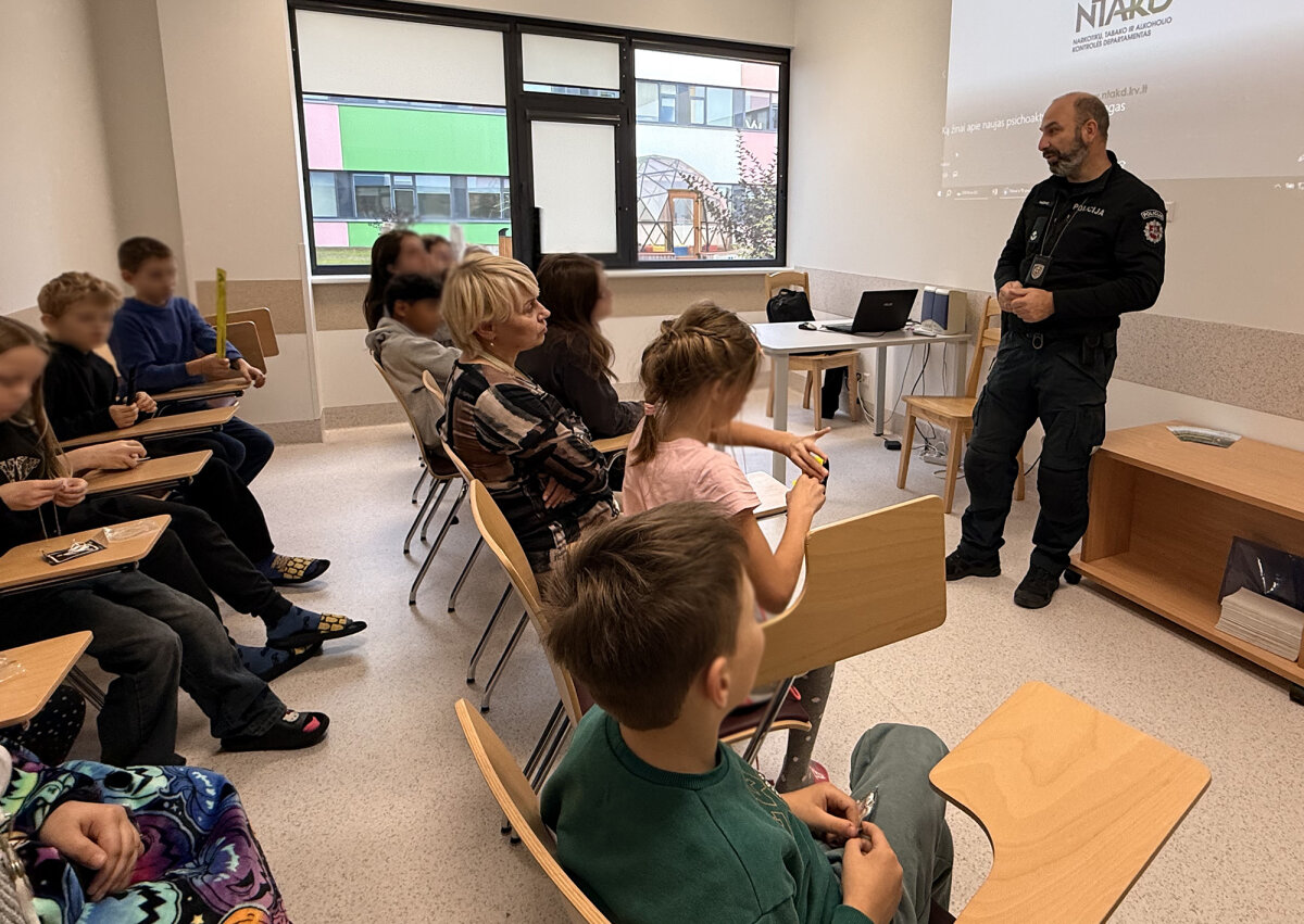 Šiandien mūsų mokymo centre netrūko įdomybių – mus aplankė policijos pareigūnas Andžej Radevič! Jis papasakojo daug įdomių dalykų apie tai, kaip saugiai elgtis gatvėje, viešajame transporte. Vaikai aktyviai klausėsi, uždavinėjo klausimus ir netgi pasidalijo savo nuotykiais. Pareigūnas taip pat rimtai, bet suprantamai papasakojo apie psichotropines medžiagas ir jų žalą, skatindamas rinktis sveiką bei atsakingą gyvenimo būdą. Be to, jis visiems atnešė dovanų atšvaitų, kad tamsiuoju metų laiku būtume dar saugesni kelyje! Susitikimas buvo ir smagus, ir pamokantis – išėjome su gera nuotaika ir naujomis žiniomis!