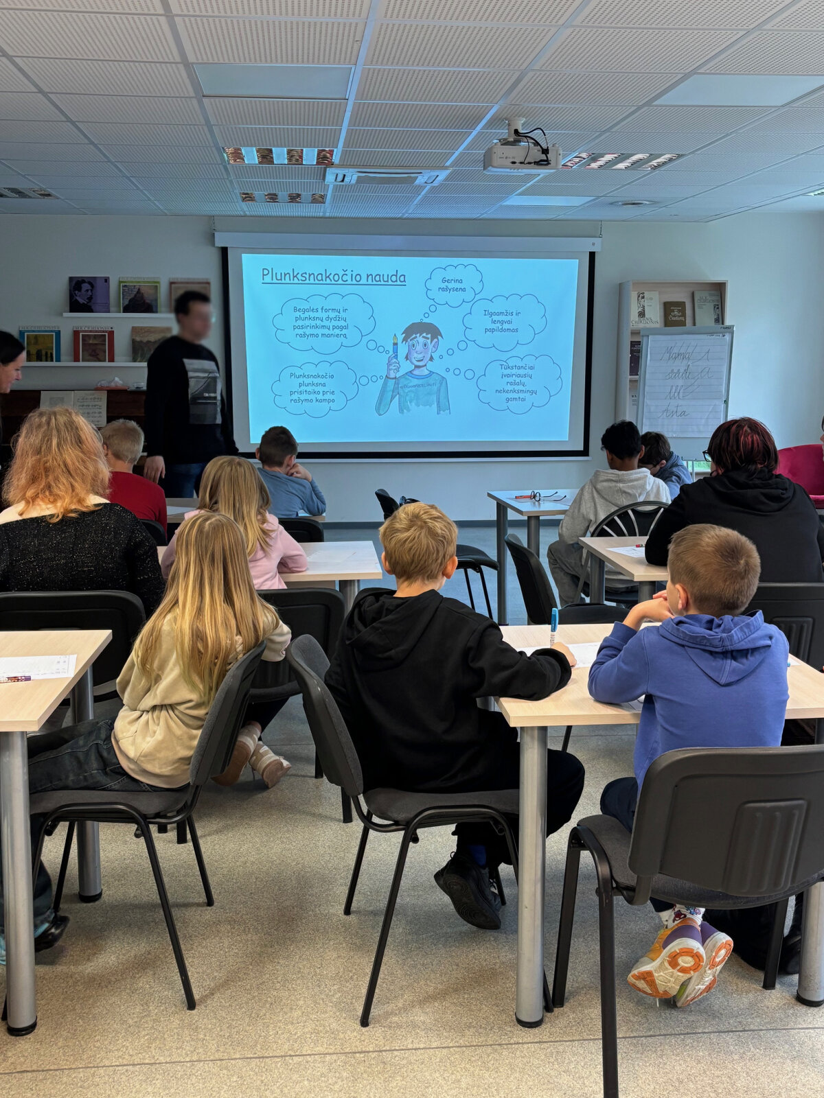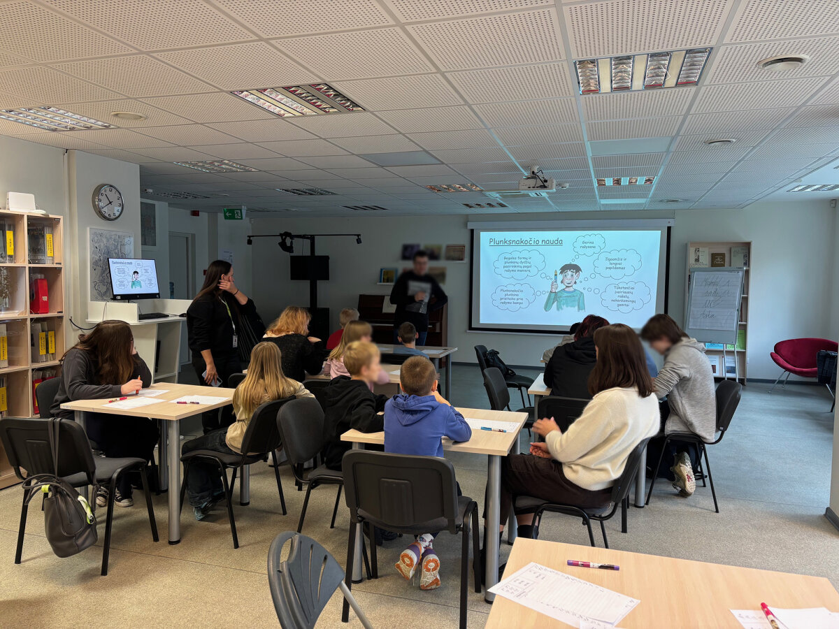 Po pamokos visi apžiūrėjo bibliotekos erdves, pasivaikščiojo po skaitymo ir edukacines zonas. Mokiniai iš pamokos išsinešė ne tik naujų įgūdžių, bet ir įkvėpimo rašyti tvariau bei sąmoningiau.