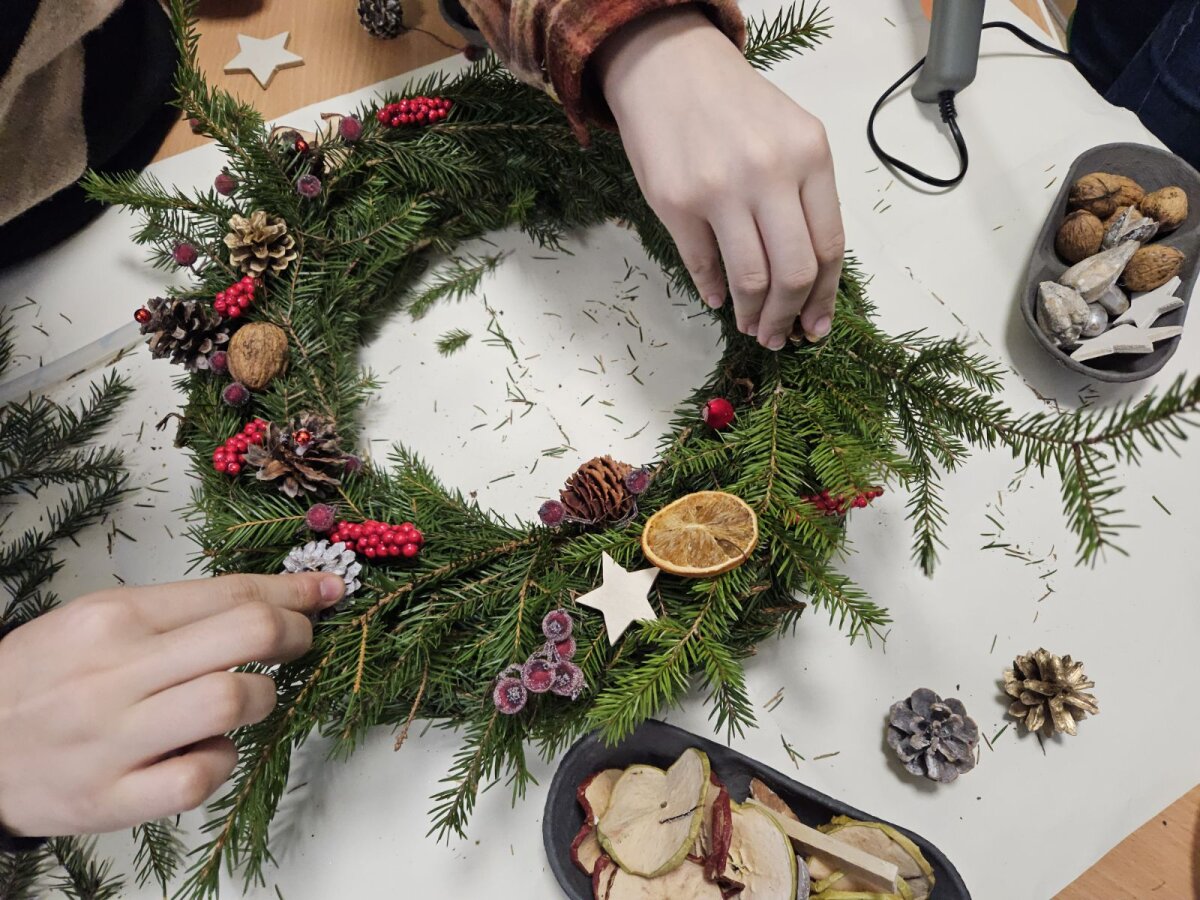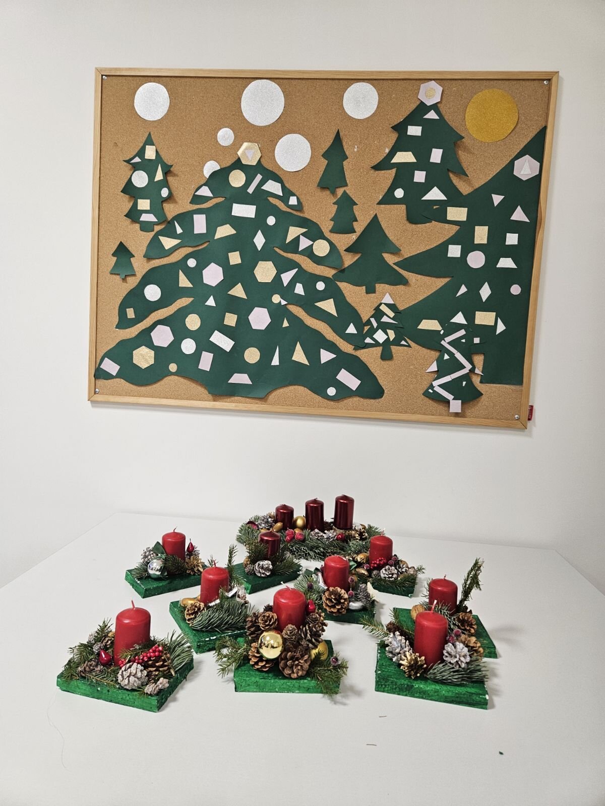 Nors dar tik pirmosios gruodžio dienos, mūsų mokykloje jau pakvipo Kalėdomis. Klasėse mirga žibančios girliandos, kvepia imbieriniais sausainiais ir mandarinais, vaikai kruopščiai pina advento vainikus ir kuria mažas dovanėles sau bei mylimiems artimiesiems. Ore tvyro šilta šventinė nuotaika, lyg tylus stebuklo laukimas, o pasiruošimas šventėms tęsiasi visą mėnesį – kupinas kūrybos, šypsenų ir jaukumo.
