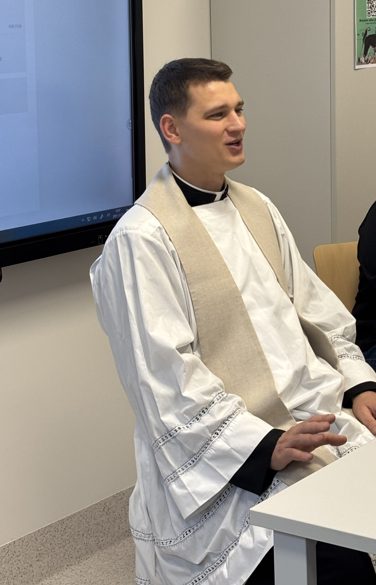 Vilniaus Santaros kapelionas Gabrielius Satkauskas pakvietė bendruomenę prisidėti prie gerumo akcijos – akimirkai sustoti, įsiklausyti ir atsigręžti į šalia esantį žmogų. Į šį kvietimą nuoširdžiai atsiliepė mokiniai ir mokytojai, parengę ypatingą dovaną – savo rankomis kurtus